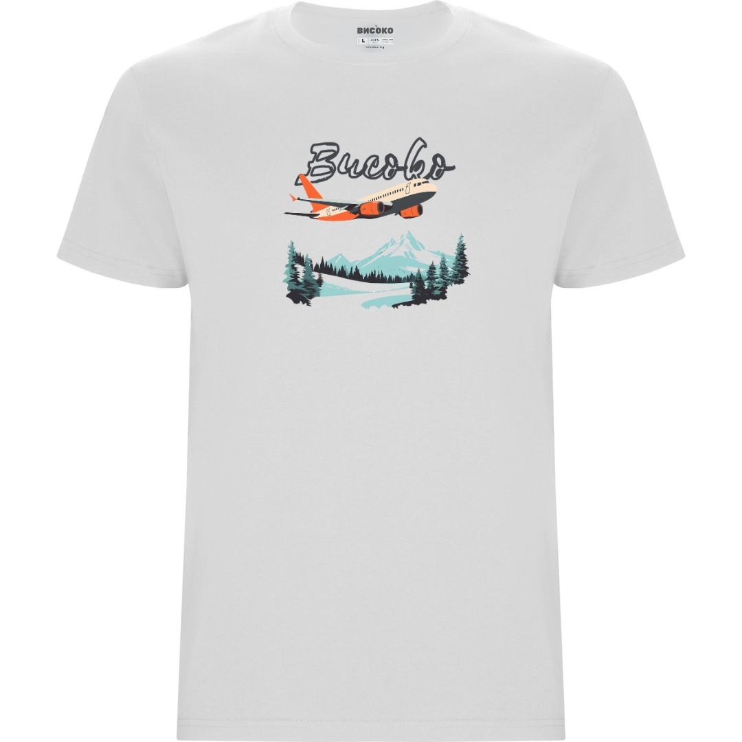 Мъжка тениска - Бяло - Самолет над планина
